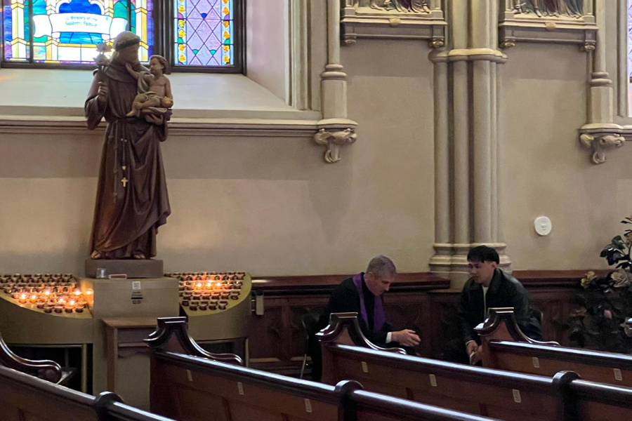 St. Patrick’s Old Cathedral, Holy Wednesday. Cold, blustery afternoon and evening in SoHo. A small band of joyful missionaries braving the cold. Few willing to stop; most in a hurry to escape the blustery wind. Still, despite all of this, the Holy Spirit brought a few souls to us who were willing to pause a moment on the chilly corner for a brief chat about the coming holy days and how best to prepare for them. Several ended up heading into the church, at least to light a candle and say a prayer. And there the missionary in the back of the church, and the Holy Spirit, did the rest.